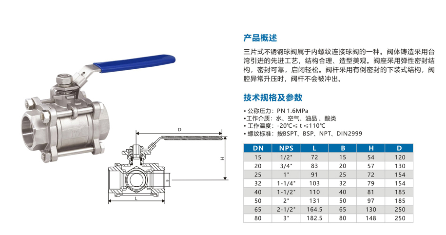 | 产品名称:三片式不锈钢球阀 查看次数:151次 |