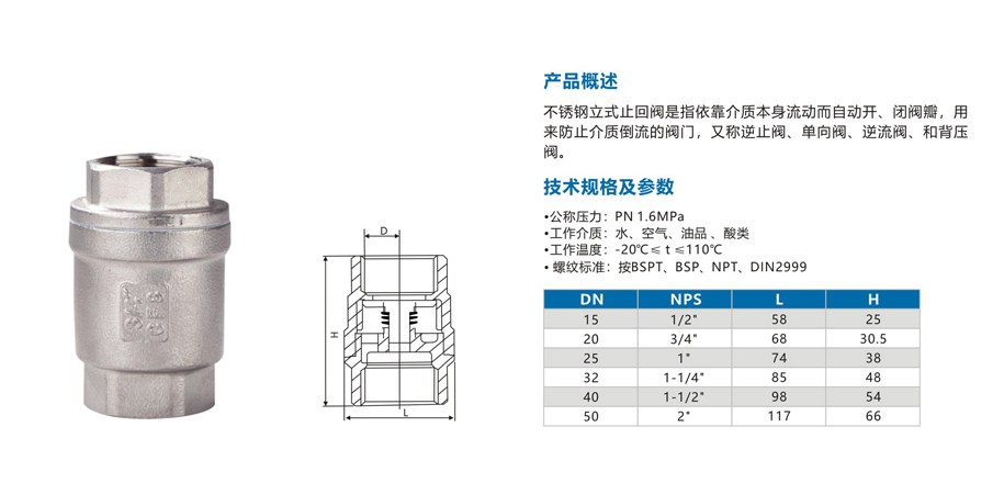 | 产品名称:不锈钢立式止回阀 查看次数:162次 |