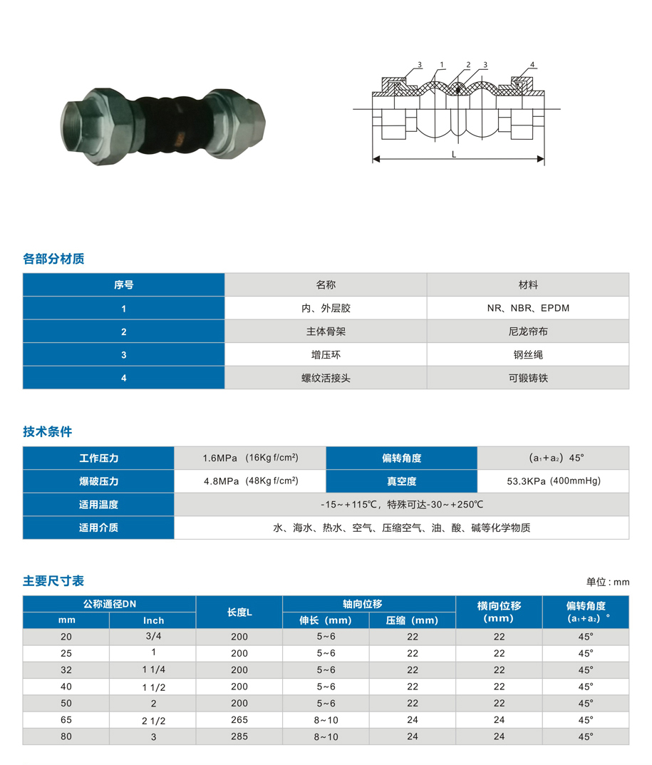 | 产品名称:JGD-B型丝扣连接橡胶接头 查看次数:138次 |