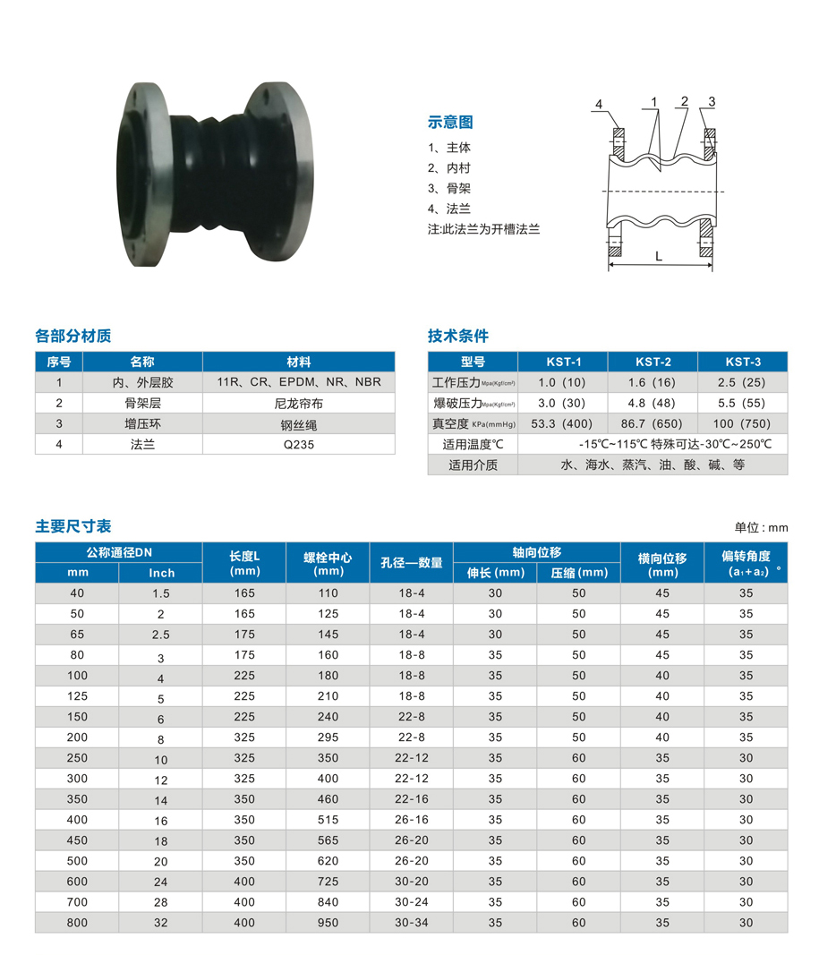 | 产品名称:KST型可曲挠双球橡胶接头 查看次数:135次 |