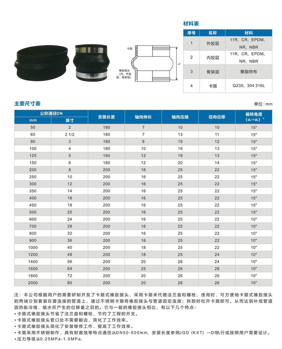 | 产品名称:JGD型卡箍式橡胶接头 查看次数:142次 |